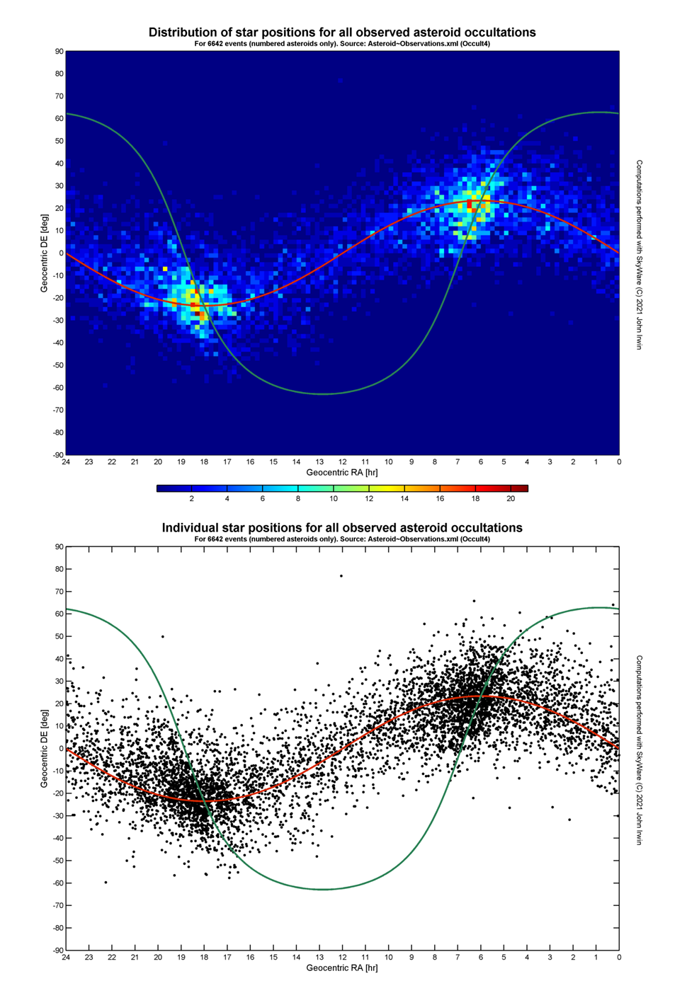 Distribution of star positions for all observed asteroid occultations