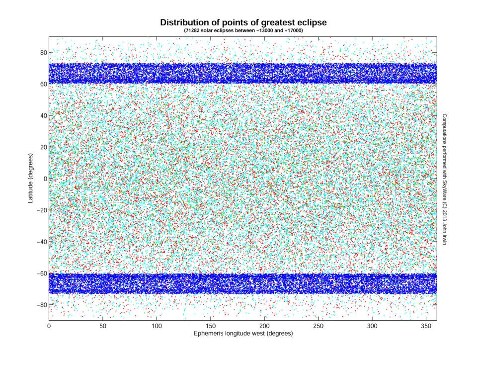 Global distribution of the point of greatest eclipse -13000 to +17000