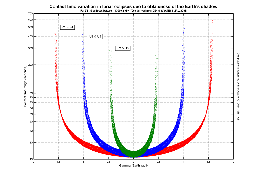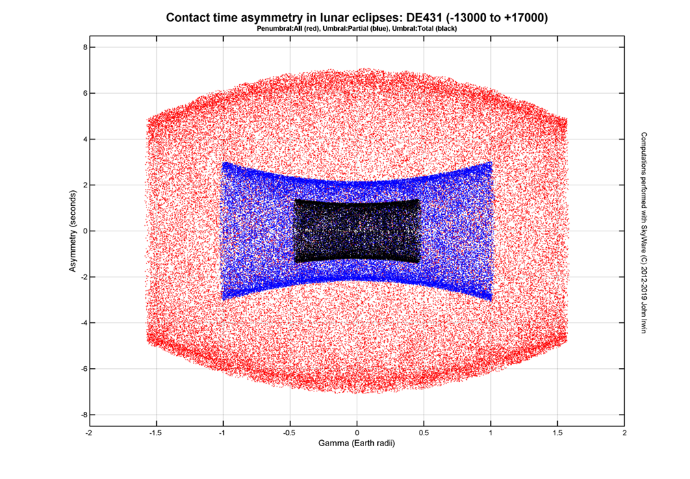 Contact time asymmetry in lunar eclipses: DE431 (-13000 to +17000)